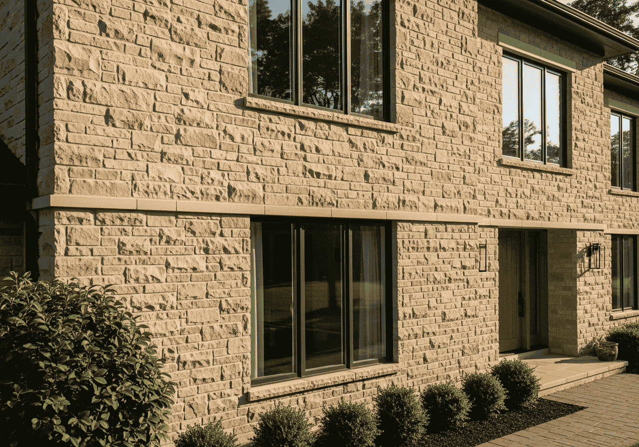 Штукатурка трескается, выцветает, требует обновления каждые 3–5 лет. Камень — нет. Он не боится ударов, солнечного ультрафиолета и влаги.